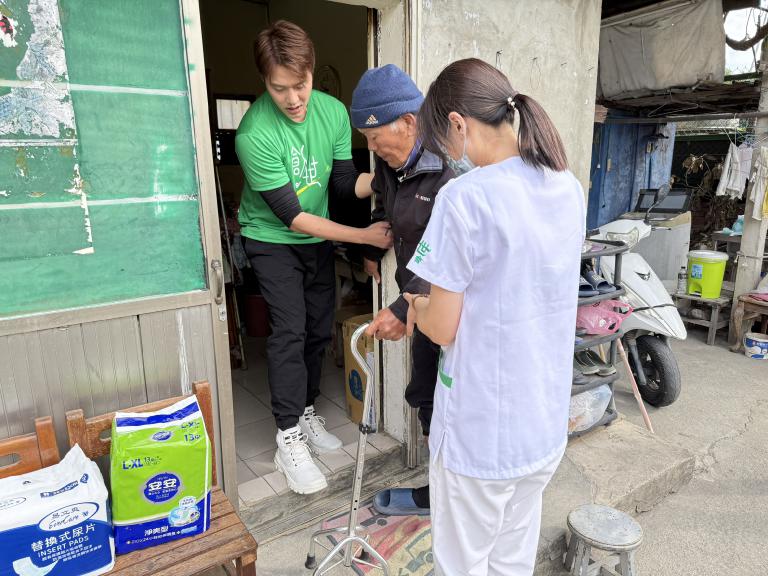 這次關懷的對象是82歲的林奶奶,她在2018年因腦中風臥床至今,她80歲的丈夫為主要照顧者,過去曾任20年船員的他,退休後就長期陪伴照顧妻子,只是他自己自身也罹患腦瘤、攝護腺癌及下肢關節退化等多重疾病。夫妻倆老老陪伴、相互扶持,在有限資源下艱辛度日,創世台中院從去年開始提供到宅服務,由護理師到府指導照護技巧,並給予心理支持及資源連結,希望讓丈夫獲得喘息。藝人張睿家表示,這一次趁著拍戲空檔南下做這麼有意義又可以號召大家相互扶持的事,自己感到很開心。睿家也捲起衣袖整理了林奶奶的菜園並細心澆水,希望盡己之力影響更多人加入「寒士吃飽30-送禮到家」活動。更能夠參與這次公益活動感到非常榮幸,也深刻體會到到宅服務對弱勢家庭的重要性。