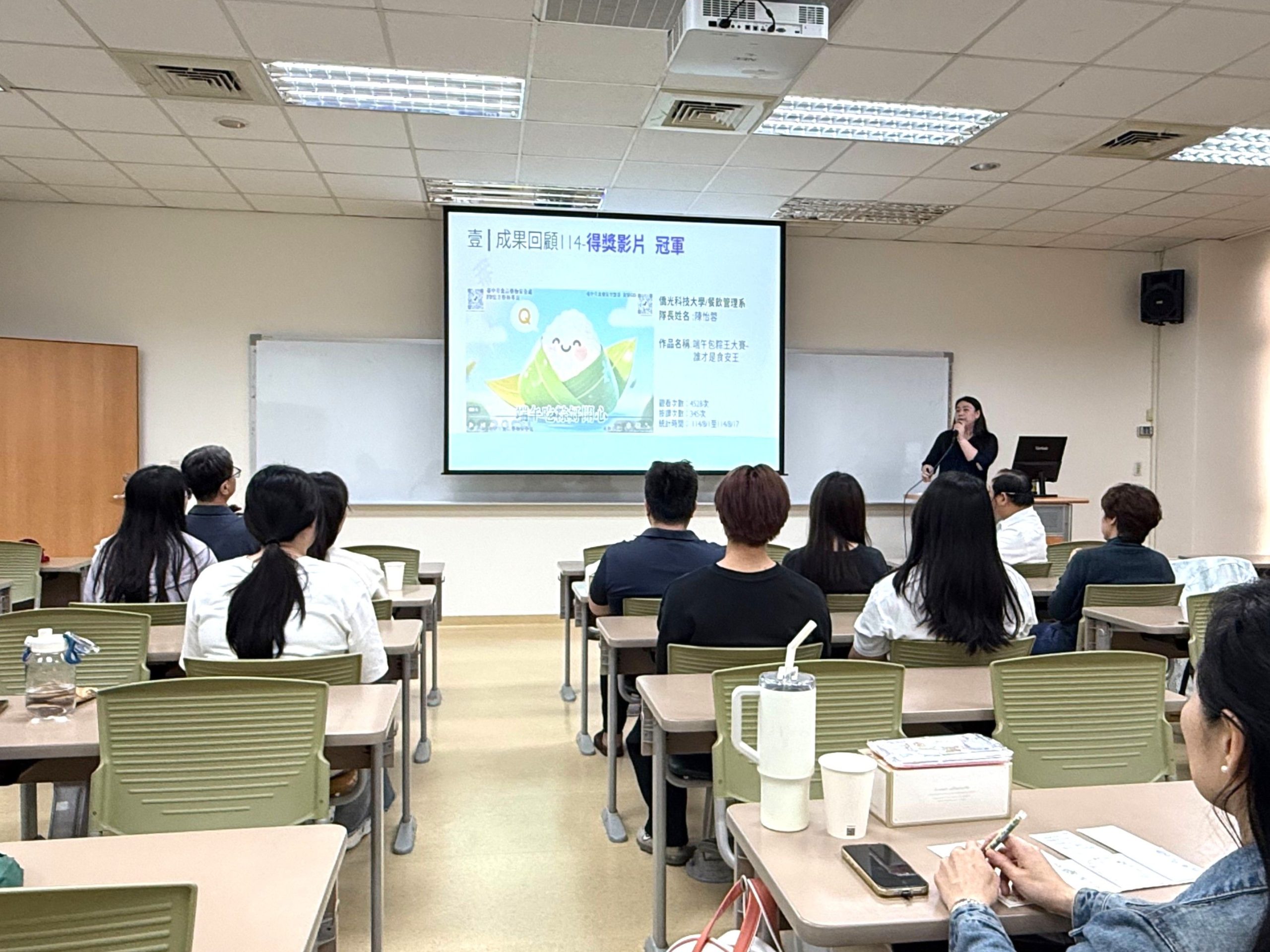 說明會中分享114年節慶食安宣導影片的冠軍作品。