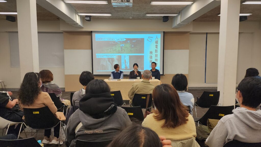 人權電影放映會一共舉辦三場系列活動,分別播放人權電影獎6部得獎作品。首場活動於7日舉行,以「生命的抉擇」為題,播放陳俊維導演的紀錄短片《哥哥死後去了哪裡》及李家驊執導的劇情短片《薄荷涼菸》,從生命消逝的議題出發,帶出對於信仰自由、司法正義與人性尊嚴的辯證;14日進行第二場放映,以「島上的異鄉者」為主題,播放顏齊瑩導演製作的《再見大我》,以及黃勇嵻執導的《留學生》,從榮民、外配、迫遷移居到留學打工的勞動人權等議題,共同照見對於社會弱勢群體的關懷。