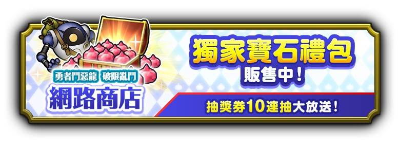 「勇者鬥惡龍 破限亂鬥 網路商店」 也正式開幕!商店內提供獨家寶石禮包,以及附贈可兌換各式道具的「連結硬幣」特別禮包,讓玩家以更多元的方式強化冒險實力。