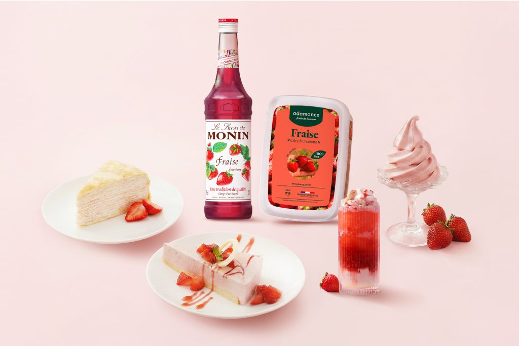 從飲品到甜點一次到位開元為餐飲客戶打造美味與質感兼具的草莓季商品方案。(圖/開元食品)