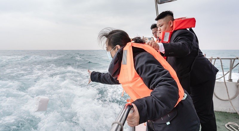 波新聞─陳瑩/高雄高雄市政府於12月3日上午舉辦114年第四場聯合海葬,家屬於追思會中共同緬懷先人,儀式和平溫暖,迄今已有103位先行者參加聯合海葬,顯示環保自然葬逐漸成為市民選項之一。高雄市聯合海葬自113年開辦以來,秉持「尊重生命、回歸自然」的理念,提供包含火化、骨灰細化暫厝、接駁與船舶等全程免費服務協助家屬完成告別儀式。參與者不需承擔龐大的費用與傳統祭祀上的繁瑣程序,也能以更環保的方式延續親人遺願。這次追思會於第一殯儀館景行廳舉行,家屬藉由照片、文字與默禱表達思念,在寧靜的氛圍中為親人送上最後祝福。透過海葬,逝者的身影不再受限於碑塔,而是以更貼近自然的方式延續生命,藉由定期舉行追思儀式,讓自然葬觀念更深入民眾日常。民政局長閻青智指出,聯合海葬象徵回歸自然、放下執念,也減輕土地使用壓力,符合永續殯葬精神,市府亦將持續推廣海葬、樹葬與植存等自然葬法,期盼市民在面對生命告別時有更多兼具環保與尊嚴的選擇。圖/家屬拋撒亡者安息骨灰