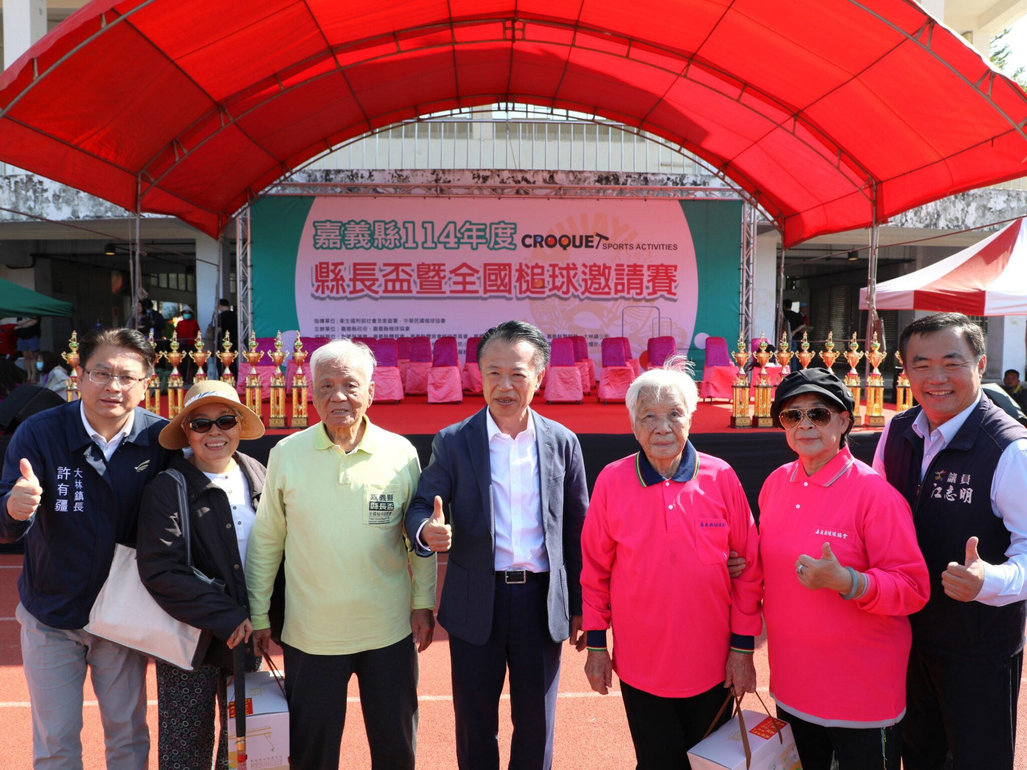 嘉義縣114年「縣長盃暨全國槌球邀請賽」今(6)日在大林體育運動公園熱鬧展開,縣長翁章梁親自出席,為來自全國22個縣市、共95支隊伍、約700名選手加油打氣,現場氣氛熱烈。