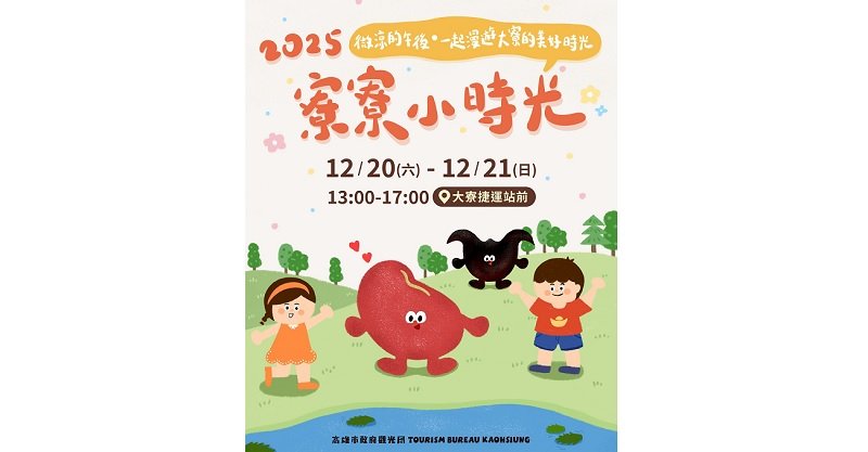 波新聞─李至文/高雄暖冬高雄最好玩!由高雄市政府觀光局主辦的「寮寮小時光」,將於12月20、21日下午1時到5時在大寮捷運站1號出口前草皮區登場。現場將推出一系列親子同樂的趣味闖關、體適能、氣墊遊樂區、大寮小學堂及舞台表演,以及20攤美食與文創市集。活動當天上午,結合大寮在地「文化環境發展協會」推出2條走讀小旅行(報名網址:https://reurl.cc/oKVK4q ),帶領大家走訪大寮在地的磚窯場、寺廟、古厝,體驗製作紅豆餅,歡迎大家帶著野餐墊,一起在草地上享用美食、闖關挑戰,與家人朋友度過悠閒的週末午後時光。觀光局長高閔琳表示,大寮區從清代鳳山縣軍事汛塘與先民開墾搭建茅草寮而得名「大寮」。近年隨著捷運通車,早期以稻作、紅豆及菱角等農業發展為主的大寮,轉型為高雄大都會的工商區。今年觀光局首度於大寮舉辦「寮寮小時光」活動,串連多元體驗,包括親子闖關遊戲、兒童體適能、主題DIY體驗與氣墊遊樂設施,並邀請「文化環境發展協會」導覽老師帶領遊客深度走讀,探訪瑞榮紅磚工廠、共益磚窯廠、五龍山南雄代天府、大發開封宮包公廟、潮寮吳家古厝等在地景點,同時還安排紅豆餅DIY,讓大家從文化、人文到味蕾完整感受大寮的活力與魅力。歡迎遊客來大寮參與最溫暖的冬季之旅。高閔琳指出,「寮寮小時光」趣味闖關活動共有4道關卡,結合大寮特色,菱角及紅豆等在地元素設計「大寮小常識挑戰帖」、「輕黏土製作DIY」、「紅豆畫」及「創意紅豆飯團製作」,適合親子合作挑戰。前250名完成闖關可獲得紅豆造型牛奶糖及50元市集兌換券,歡迎民眾活動當天於服務台報名領取闖關卡。現場也安排菱角、紅豆及稻香小學堂,由在地「文化環境發展協會」講師分享菱角、紅豆及稻米小常識。觀光局補充,活動舞台同樣精彩,包括MOMO家族、YOYO家族的唱跳表演、樣爸森友會與爬蟲類動物互動、陸爸爸故事劇團,以及小朋友最愛的馬戲魔術師與小丑街頭藝人表演。現場更有套圈圈、小小足球、滾球障礙賽及布袋球等體適能活動,結合20家美食與文創市集,絕對讓小朋友歡樂一整天。觀光局提醒,大寮捷運站周邊停車空間有限,建議旅客搭乘高雄捷運橘線至「大寮站(OT1)」1號出口,即可輕鬆抵達現場,落實低碳旅遊。年末高雄週週有活動,中央公園「2025高雄聖誕生活節」浪漫的節慶燈飾吸引民眾朝聖打卡,歡迎大家聖誕及跨年出遊首選高雄住一晚,享受高雄暖冬城市魅力。更多資訊請上「高雄旅遊網」(https://khh.travel )、FB粉專及IG查詢。