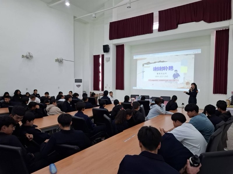 許員警甫自警專畢業、服務滿一年,現於派出所第一線執勤,期間實際受理多起與青少年相關案件,深刻體會許多風險與傷害其實可透過事前預防加以避免。此次宣導中,她結合實務經驗,向學生說明校園霸凌防制、社群平台常見網路購物詐騙手法、數位性別暴力的樣態與因應方式,以及電子菸對身心健康與相關法律責任等議題,並透過提問與情境分享方式,引導同學思考日常生活中可能遇到的風險,鼓勵學生主動發言、踴躍提問,提醒同學提高警覺,遇到問題應勇於向師長或警方求助。