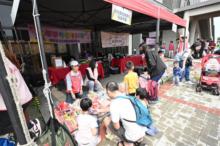 ▲玩具銀行的玩具交換讚及玩具維修站;寶貝嘟嘟車行動服務,提供0至6歲嬰幼兒及照顧者,操作教玩具及諮詢服務等。(圖╱彰化縣政府提供)