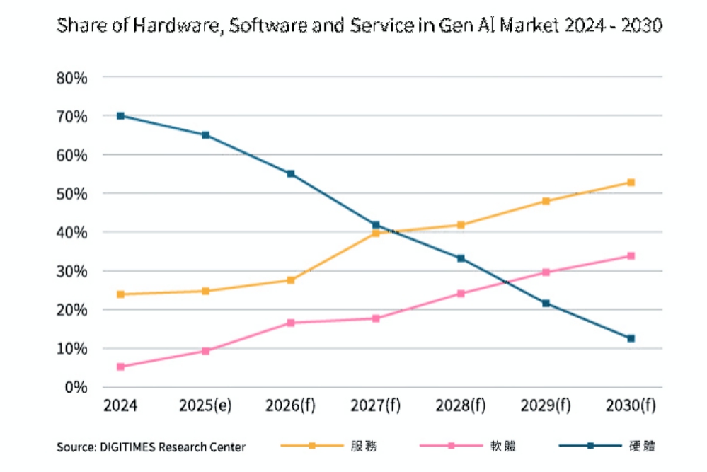 ▲DIGITIMES Research 預估,2026 – 2030 年生成式AI 將為全球經持續帶入成長動能。(圖/主辦單位提供)