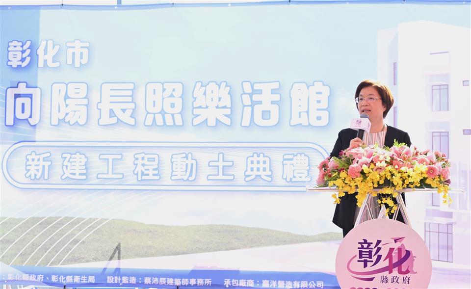 「彰化市向陽長照樂活館新建工程動土典禮記者會」於今(16)日上午在向陽社區活動中心舉行,由彰化縣長王惠美、議長謝典霖、衛生福利部長期照顧司簡任技正白姍綺等人共同執鏟動土。王縣長表示,該大樓由中央補助6,358萬元,縣府自籌6,342萬元,工程總預算為1億2,700萬元,預計116年完工,未來將能提供在地民眾托嬰、老人日間照顧、社區活動及健康促進等全齡照顧服務,成為向陽社區守護小寶貝,照顧老寶貝的最佳堡壘。