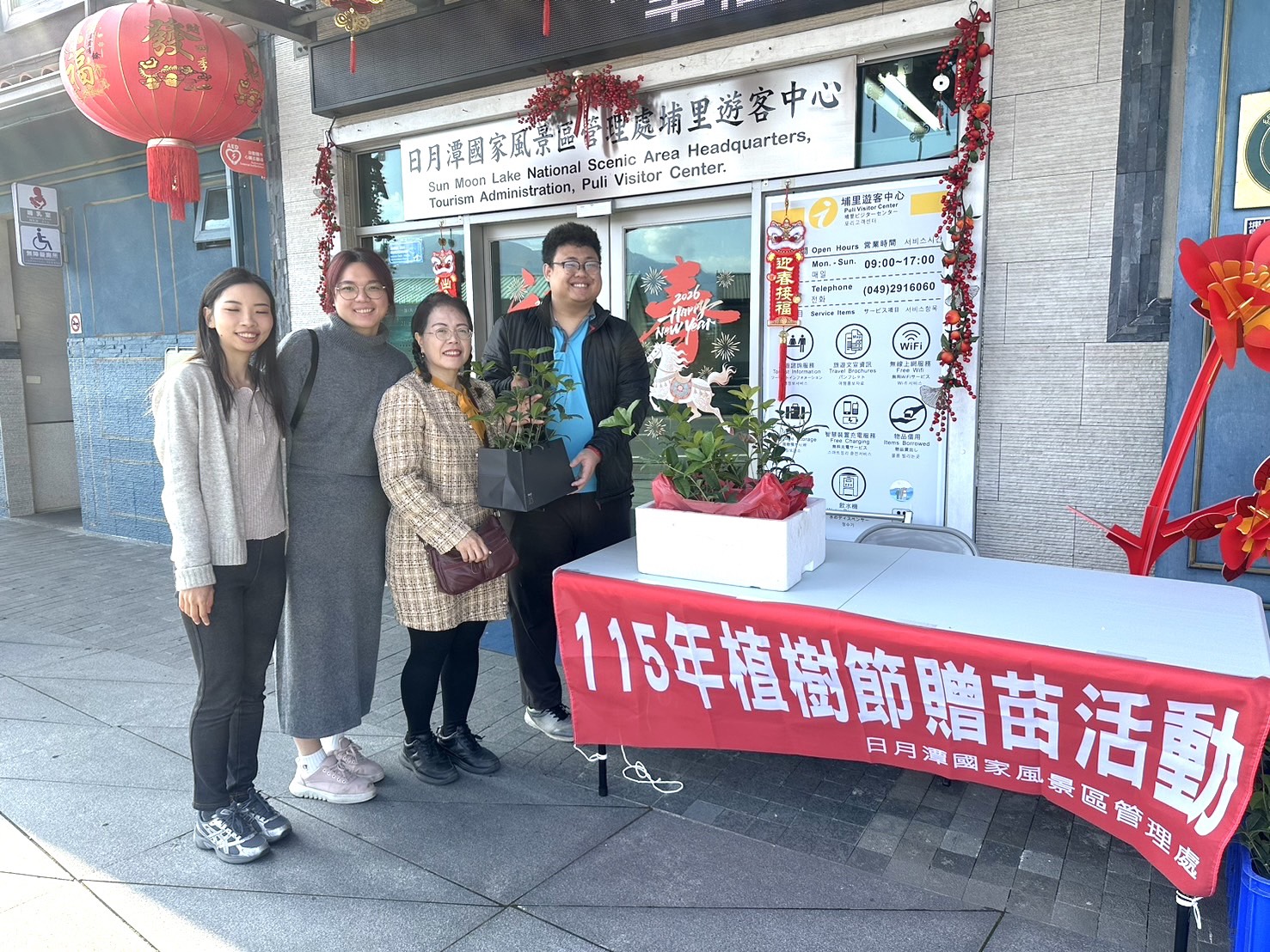 另日管處也同時於埔里遊客中心辦理贈苗活動,現場贈送100棵桂花給前來遊客中心的遊客及民眾,除響應政府推動植樹造林美化政策外,透過贈苗活動,鼓勵遊客與民眾參與生態環境永續,喚起民眾生態環保意識,並藉由樹苗種植,促進生活居家空間環境綠美化營造,共同創造宜居環境。