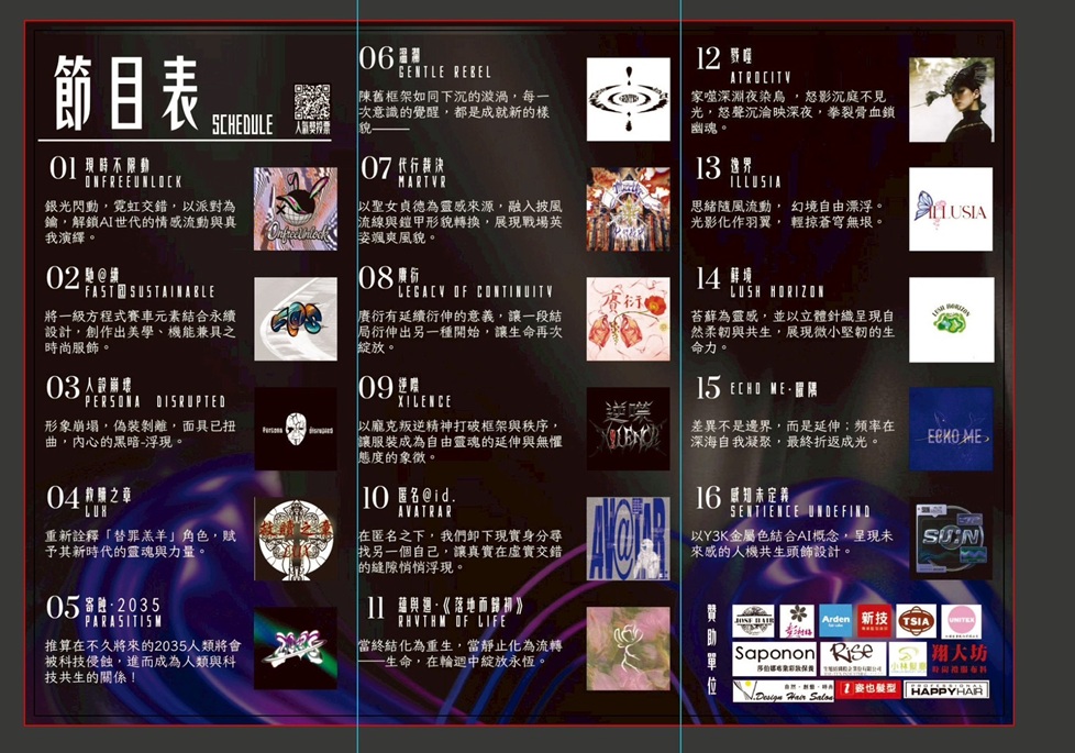 行政總監郭哲賓老師表示,畢業製作不僅是學習總結,也是學生邁入時尚產業的第一步。同學自主題發想、整體造型到工藝呈現皆展現高度專注與突破精神,盼作品能為時尚界注入深度與創新。
