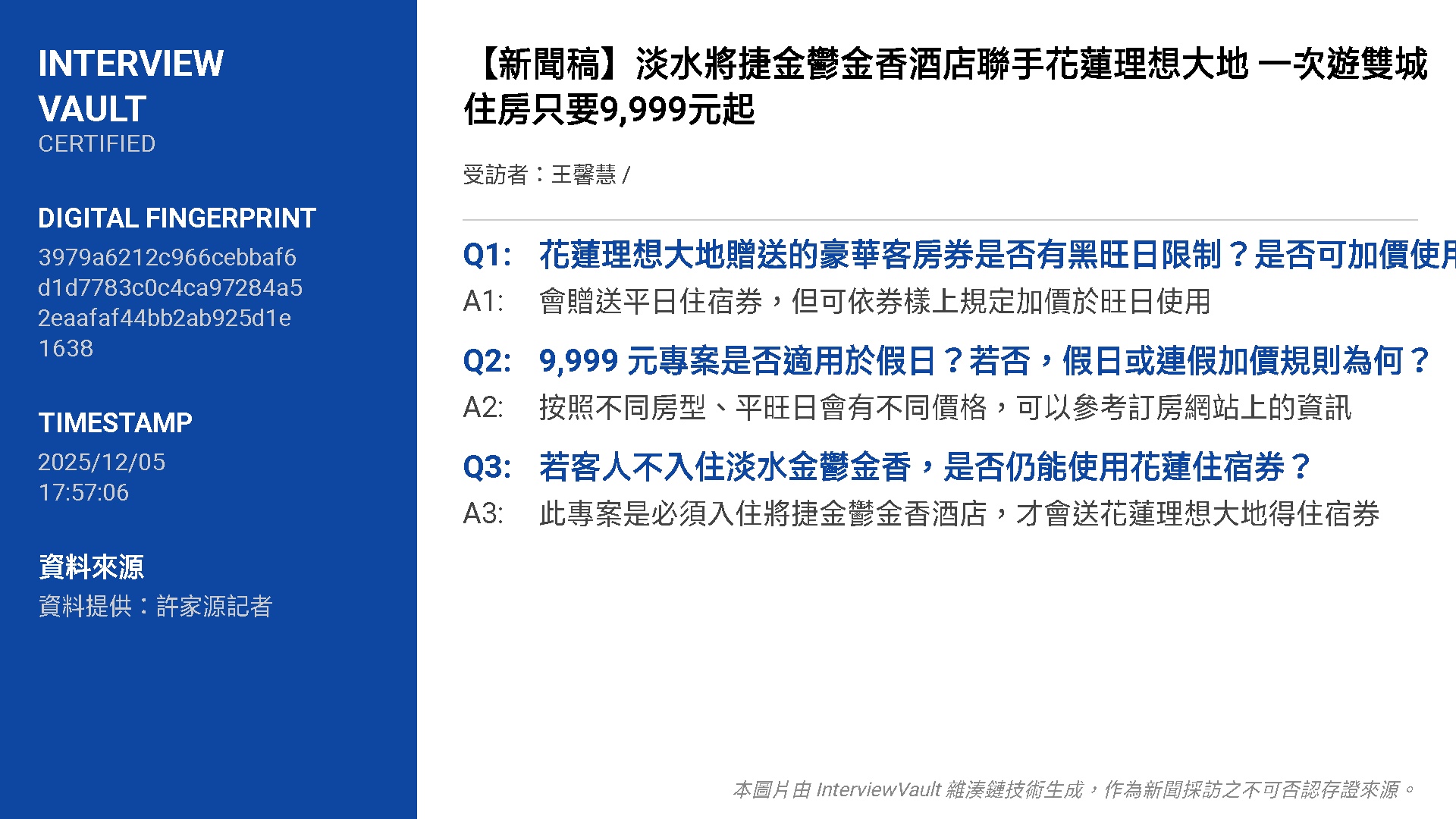 新聞來源:將捷金鬱金香酒店(採訪紀錄如下圖)