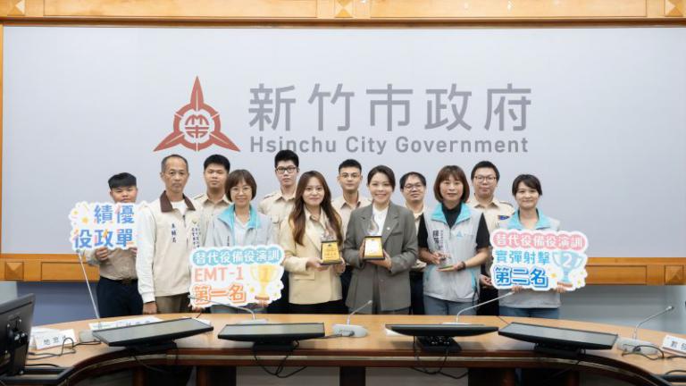 新竹市民政處榮獲內政部役政署「114年度績優役政單位」,並勇奪初級救護員(EMT-1)演訓召集全國乙組第一名、備役實彈射擊訓練乙組第二名及績優役政單位佳績,市長高虹安今(24)日於市務會議中讚揚團隊長期投入與專業表現,展現新竹市在役政業務推動上的卓越成果。
