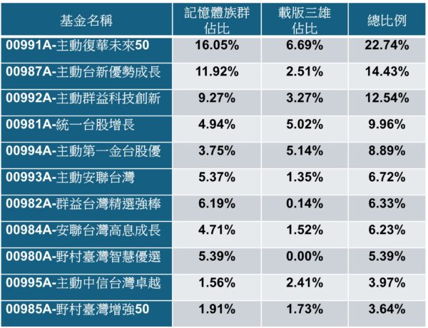 資金由權值股轉向題材與供應鏈擴散時,主動式ETF的配置差異更容易被放大。其中,00991A被視為本波輪動的直接受惠者:根據持股資料,00991A在記憶體族群持股比重達16.05%,在載板三雄合計比重亦達6.69%,兩項布局比重皆居台股主動式ETF之冠,反映其在AI供應鏈次產業的配置力道更為集中,因而在族群點火時更容易放大上漲彈性。