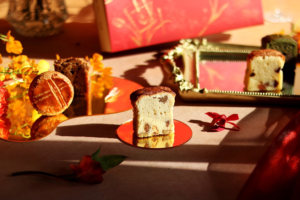 旗艦禮盒「花燦之夢」在內容上展現了極致職人工藝。主廚堅持12款不重複品項的規格,即便面臨成本與製作工法的雙重挑戰,團隊仍執著於選用昂貴荔枝打造專屬風味。此外,自去年八月推出即大受好評的磅蛋糕系列,也成為今年的靈魂要角;熱銷冠軍「綜合水果磅蛋糕」揉合牧大安心蛋、法國無鹽發酵奶油、草莓乾、草莓甜酒、杏桃乾、葡萄乾與橙酒,以四種果乾交織出濕潤且多層次的迷人香氣,躍升為品牌新經典;另一款人氣之作「抹茶紅豆栗子磅蛋糕」則以日本抹茶粉揉合栗子泥與紅豆餡,呈現濃郁的日式優雅韻味。