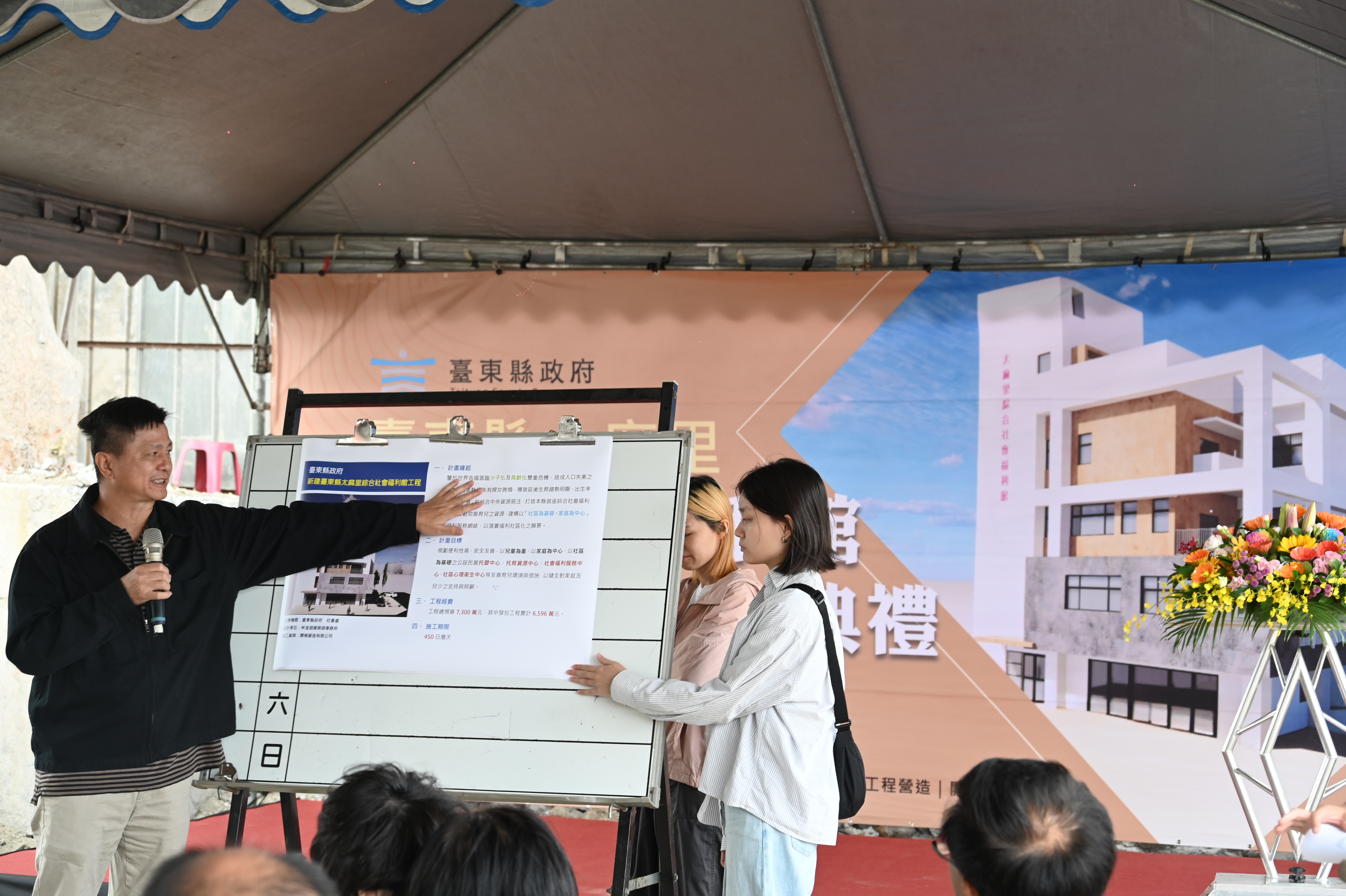 為持續推動「幸福臺東、共好城市」願景,臺東縣政府積極投入社會福利基礎建設,今(26)日辦理「臺東縣太麻里綜合社會福利館」動土典禮,象徵縣府在建構全齡照顧與育兒友善環境上再邁進重要一步;預計將興建一座兼具托育、家庭支持與心理衛生服務功能的四層樓綜合型福利館,成為南迴地區重要的家庭支持基地與社區共融中心。