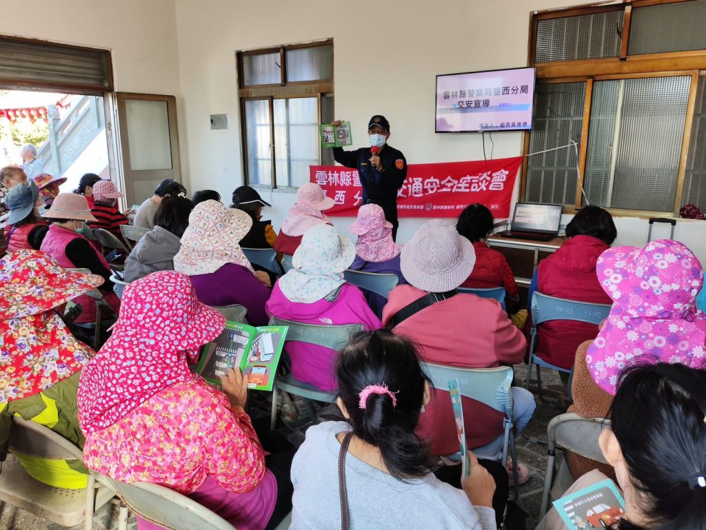 臺西分局日前獲邀於四湖鄉萡子寮社區,舉辦交通安全座談會,員警以「出入安全有撇步、用路守法保平安」為主題,向長者宣導交通安全相關觀念,提醒長者重視自身交通安全,期能有效降低年長者交通事故風險,守護銀髮族通行安全。
