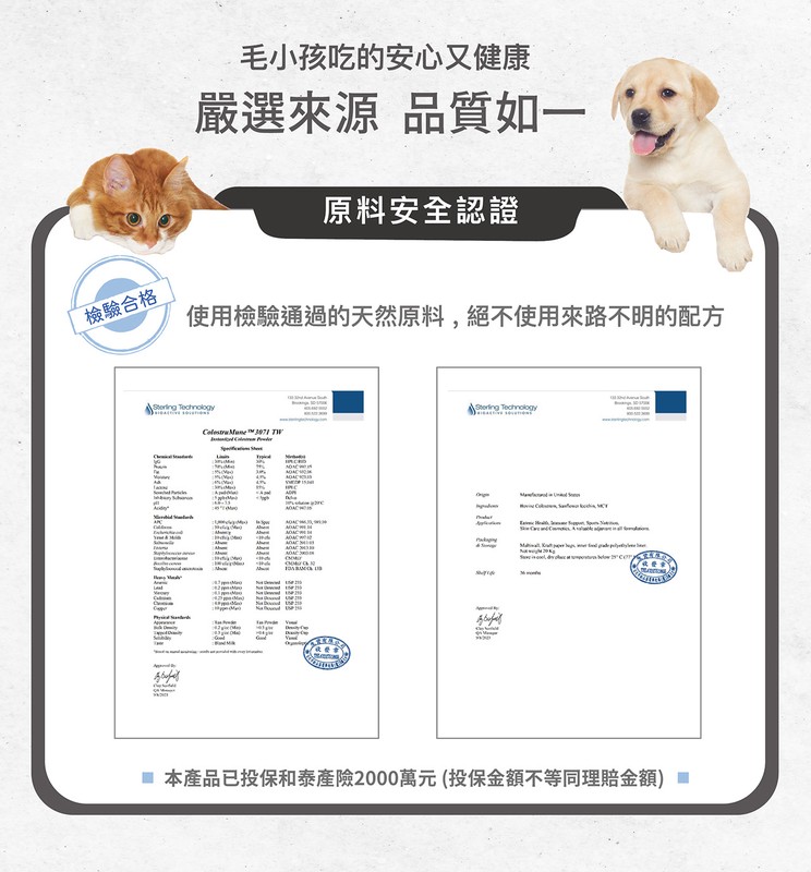 本次推出的產品原料,來自美國專業原料供應體系,並經檢驗程序確認來源與成分資訊,產品標示中清楚揭露主要營養成分含量,提供飼主在選購時作為參考依據。
