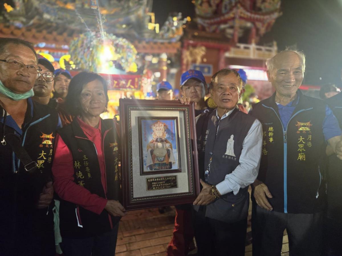 原訂於下午三時許,北港媽祖神轎預計抵達大眾廟拜廟會香,因沿線交陪境友宮友廟不斷敬獻紀念品、信眾「鑽轎腳」祈福賜福等民俗及本廟回敬手作香火袋及紀念銀盾等聯誼活動,致行程延遲四至五小時抵達,該廟主委林純菁仍虔誠恭候並率領副主委曾欽德、總幹事邱洋浩、邱子軒(鹽水農會總幹事)父女、常務監查白春桐、監查委員周清欣及委監幹部持香向北港媽祖神尊膜拜祈福,並敬獻禮酒、地方特產及紀念品,北港朝天宮由副董事長吳炳俊代表董事長蔡咏鍀獻上回禮手作香火袋、聖駕神轎錢、媽祖南都巡歷息災祈安遶境紀念銀盾,受到大眾廟爐信眾報以熱烈掌聲,十分感謝。