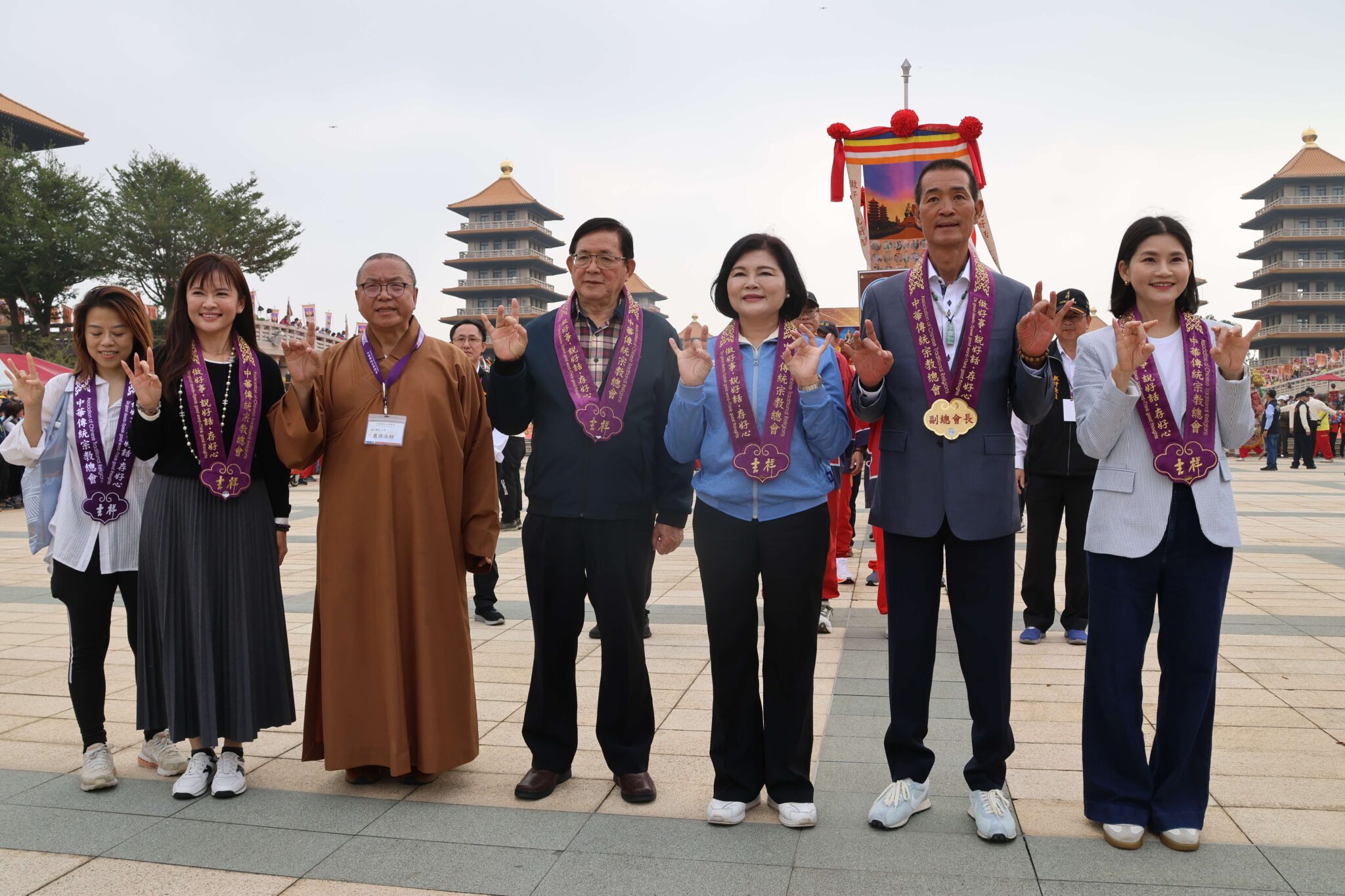 「2025世界神明聯誼會」宗教文化盛事今(25)日在佛光山佛陀紀念館隆重登場,計有來自海內外超過千座宮廟與護法神祇、十萬信眾齊聚一堂,雲林縣長張麗善、北港朝天宮董事長蔡咏鍀、縣政總顧問張清良、文化觀光處長陳璧君帶領雲林縣無形文化資產北港朝天宮莊儀團,暨縣內53間宮廟共同參與這場國際盛會,一起為民眾祈福。