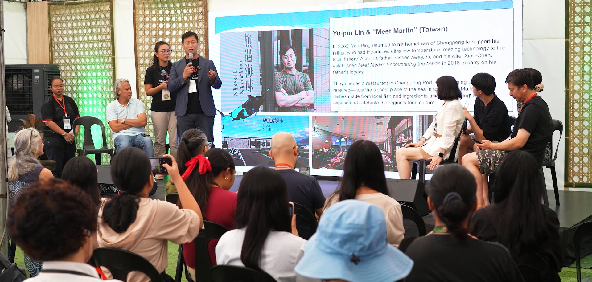 林昱濱特別向國際慢食社群介紹臺東獨特的手鏢旗魚文化,強調這項臺灣無形文化資產所體現的友善漁法和對海洋生態的尊重。他表示,用手鏢漁法捕獲的旗魚不僅是餐桌上的美食,更是討海人與大海搏鬥、用生命傳承的文化。