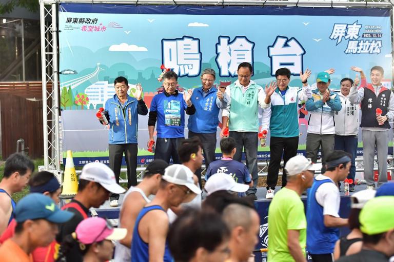 ▲「2025屏東馬拉松」以「屏實力開跑」為主題,長官們為跑者加油打氣!(圖╱主辦單位提供)