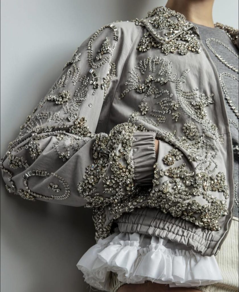 而細碎的亮片、手工抓皺或是刻意不收邊的設計,彷彿在訴說:美,來自不必完美的反差中'感受到脆弱也是一種力量。