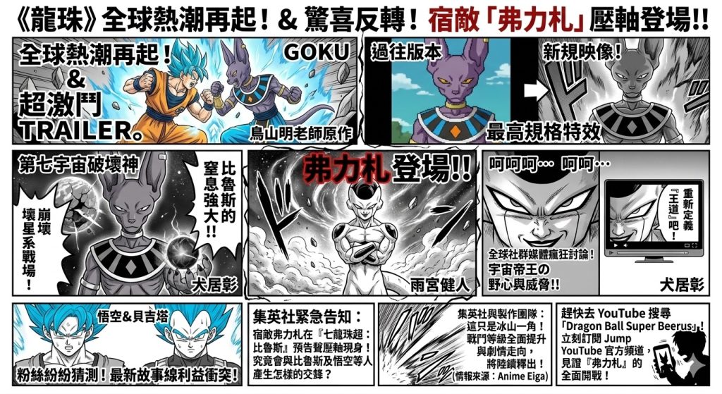 文/JO HSU 由鳥山明老師原作引發全球熱潮的經典巨作《龍珠》系列,近日再度釋出令粉絲沸騰的重磅消息。官方正式公開了以「破壞神比魯斯」為核心的最新宣傳預告片—「超激鬥 Trailer」。這段由全新畫面構成的影片,不僅展現了最高規格的戰鬥特效,更在片尾留下了足以撼動後續劇情的巨大伏筆。 破壞神威壓全場 全新戰鬥畫面曝光 本次公開的預告片中,重點圍繞著第七宇宙的破壞神「比魯斯」展開。影片透過極具張力的作畫技術,重現了比魯斯那令人窒息的強大實力。與過往版本不同,本次預告採用了大量「新規映像」(全新製作畫面),將神級對決的打擊感與速度感提升到了新的高度,讓觀眾彷彿置身於崩壞的星系戰場之中。 驚喜反轉 宿敵「弗力札」壓軸登場 就在預告片進入尾聲之際,畫風陡然一變。在漫天塵土與邪惡氣息中,龍珠系列最具代表性的宿敵—「弗力札」的姿態傲然現身。雖然僅有短短數秒,但其充滿野心與威脅感的笑容,立刻引發了全球社群媒體的瘋狂討論。粉絲紛紛猜測,這位宇宙帝王在最新的故事線中,究竟會與比魯斯及悟空等人產生怎樣的利益衝突或激烈交鋒。 作品資訊 標題:《七龍珠超:比魯斯》(ドラゴンボール超 ビルス)最新超激鬥預告 平台:官方 YouTube 頻道及各大動漫資訊網站同步上線 情報來源:Anime Eiga 集英社與製作團隊表示,預告片僅揭開新篇章序幕的冰山一角,更多關於戰鬥等級提升與劇情走向的細節,都會陸續釋出。 Please enable JavaScript to view the comments powered by Disqus.