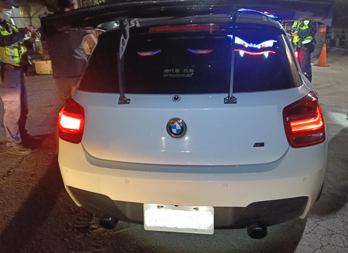 白河警日前深夜於白河區市175線與崁頂福安宮聯外道路執行交通稽查巡守勤務,發現一部小客車改裝排氣管且擅自拆除後雨刷,進而實施攔查。眼尖警發現該部車輛雖懸掛同廠牌、車色的車牌,但特徵明顯不符,進一步比對查核資料,確認該車輛懸掛他車車牌行駛於道路。