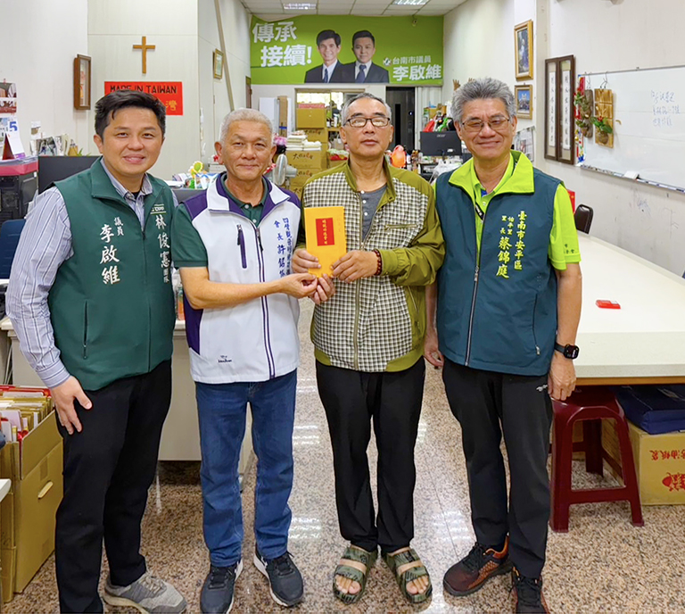 台南市議員李啟維於12月7日媒合四臂觀音明鏡功德會,在服務處捐贈民生物資和善款給弱勢族群,為寒冬帶來一股暖流,現場氣氛溫馨感人。李啟維議員亦感謝四臂觀音明鏡功德會與所有善心人士,在歲末時節為社會注入暖意,讓弱勢家庭感受到實質支持與關懷。