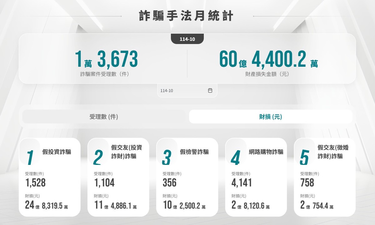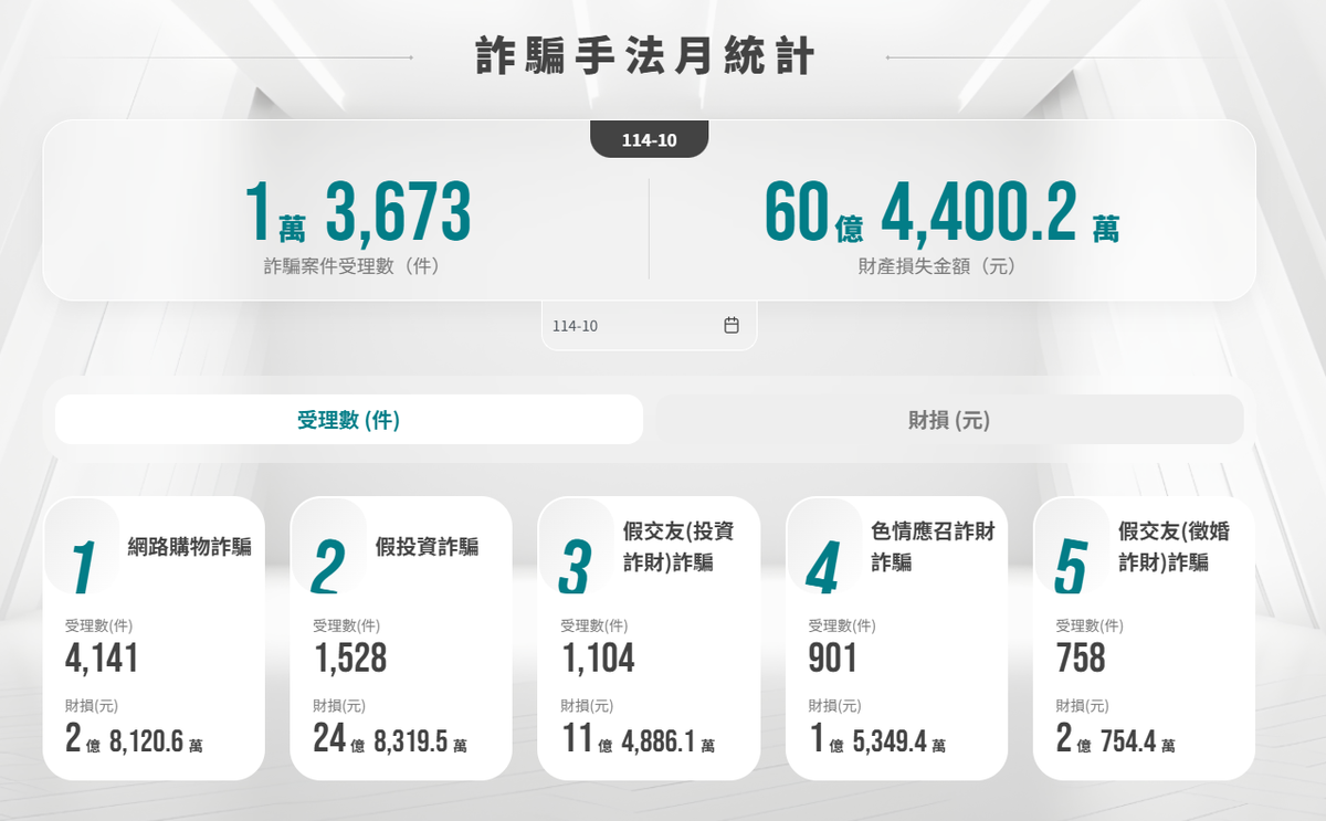 • 詐騙趨勢揭密!10月案件數與財損前五名常見手法出爐