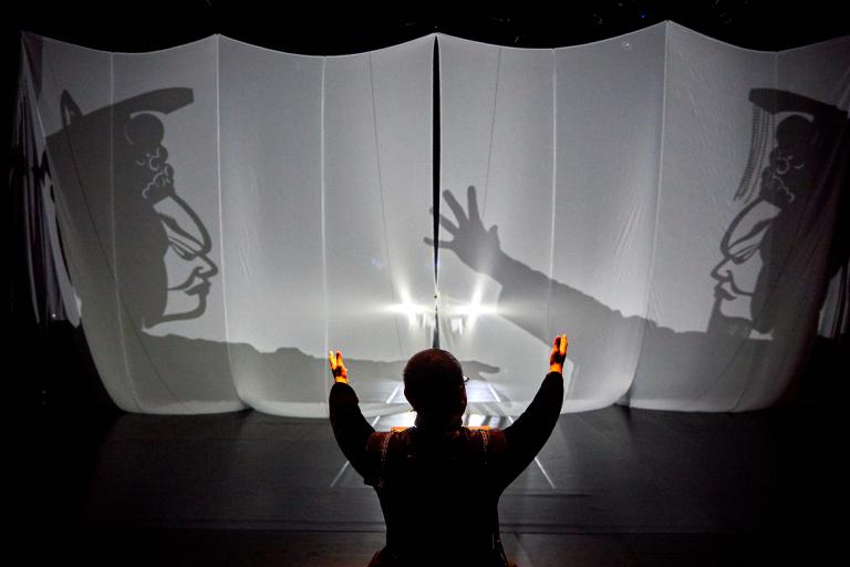 ▲《壵》取材明代馮夢龍小說,描述結拜兄弟左伯桃與羊角哀兄弟無間的情誼,結合影子戲的光影視覺效果,創造發人省思的意境與對話空間。(圖╱歌劇院提供)